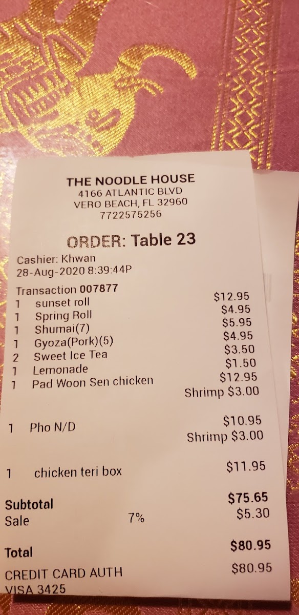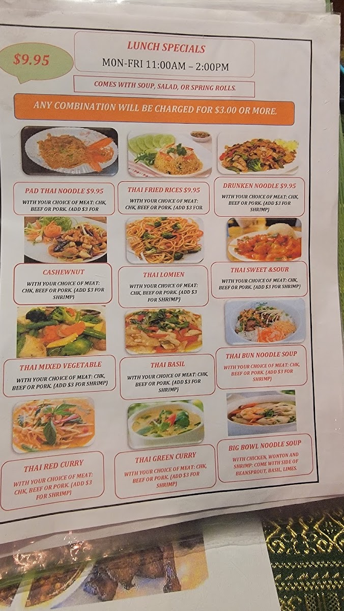 Welcome to Noodle House Thailand Food, the culinary gem of Vero Beach, Florida, located at 4166 Atlantic Blvd. This Thai restaurant offers an enticing menu filled with authentic flavors and fresh ingredients. Their lunch specials are hard to resist, featuring favorites like Pad Thai, Thai Red Curry, and Drunken Noodles, all priced at an affordable US$9.95.